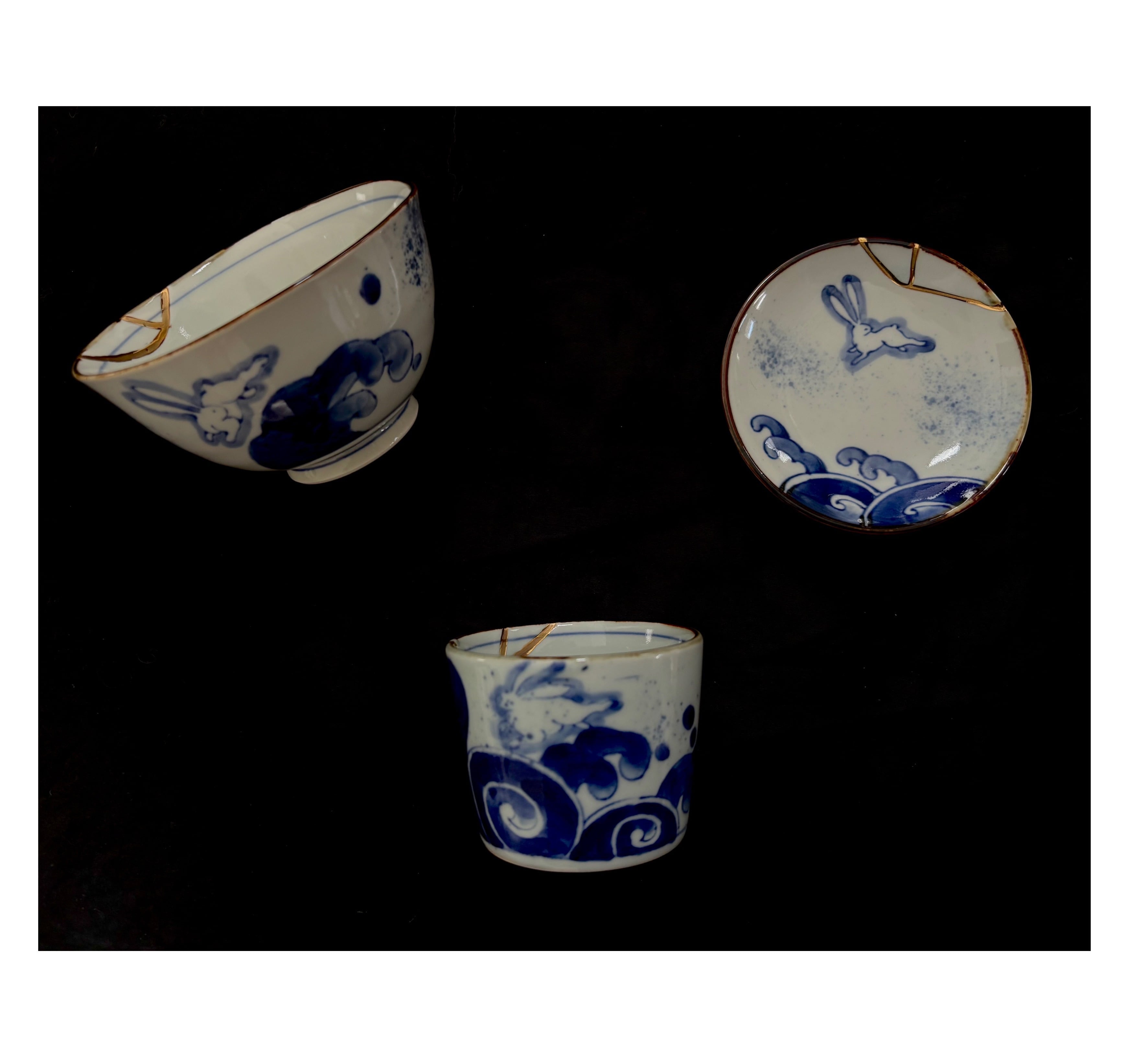 またほんものの金を使用することで雅な輝きと上質な手触りが感じられ、染付の濃淡が奥行きある絵柄が一つ一つ個性が光る器たち。