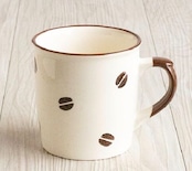 オフホワイトに香ばしそうなコーヒー豆が散りばめられた可愛いデザイン。